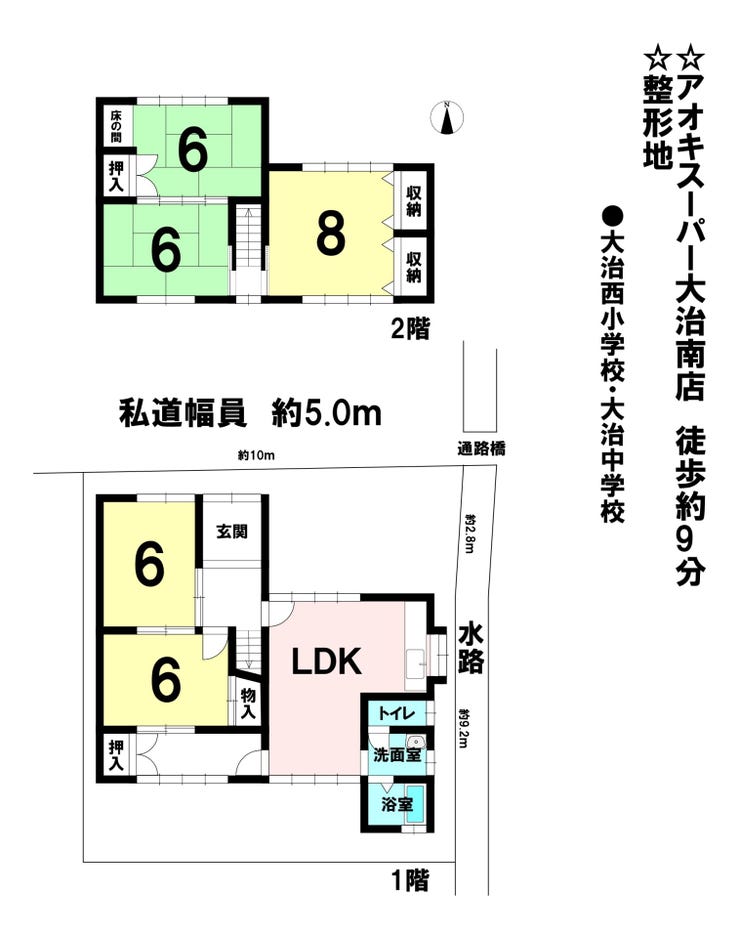 | 土地面積 | 公133.28㎡(40.31坪) | 接道 | 北側(私道)幅 約5.0m 間口 約10.50m |